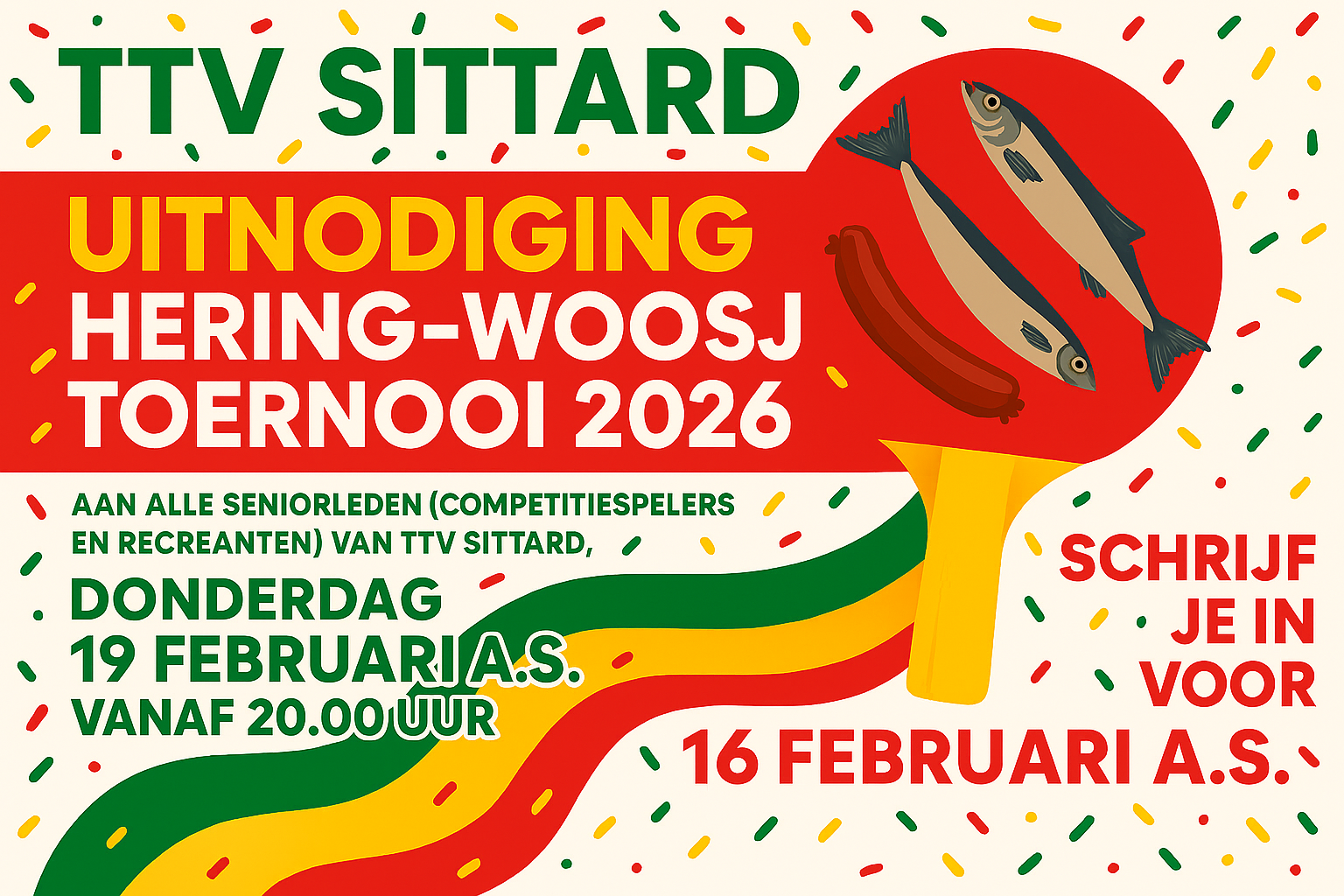 TTV Sittard Burgemeester Arnoldtsstraat 20, Sittard, NederlandBeste tafeltennis vrienden, De kerst komt er weer aan. Het kerst dubbel toernooi ook. Dinsdag 23 december, aanvang 19.00 uur. Opgeven: mail naar bovenstaand e-mail adres, of meld je mondeling aan bij mij. Gratis inschrijven is vanaf nu mogelijk. Aanmelden voor zaterdag 20 december 2025. Indeling op sterkte (door organisatie). Speel je niet mee, maar kom je wel kijken, de organisatie is nog op zoek naar iemand achter de bar. Laat graag weten of je beschikbaar bent voor achter de bar. Met sportieve groeten, Dick van Dam